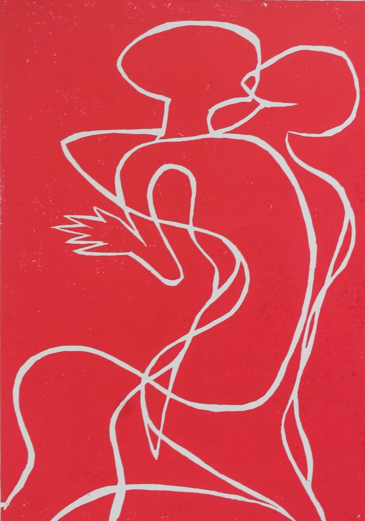 "Angrasen" – Druck der Corvinus Presse; Texte von Herr Penschuk mit 14 signierten, mehrfarbigen Linolschnitten von Petrus Akkordeon